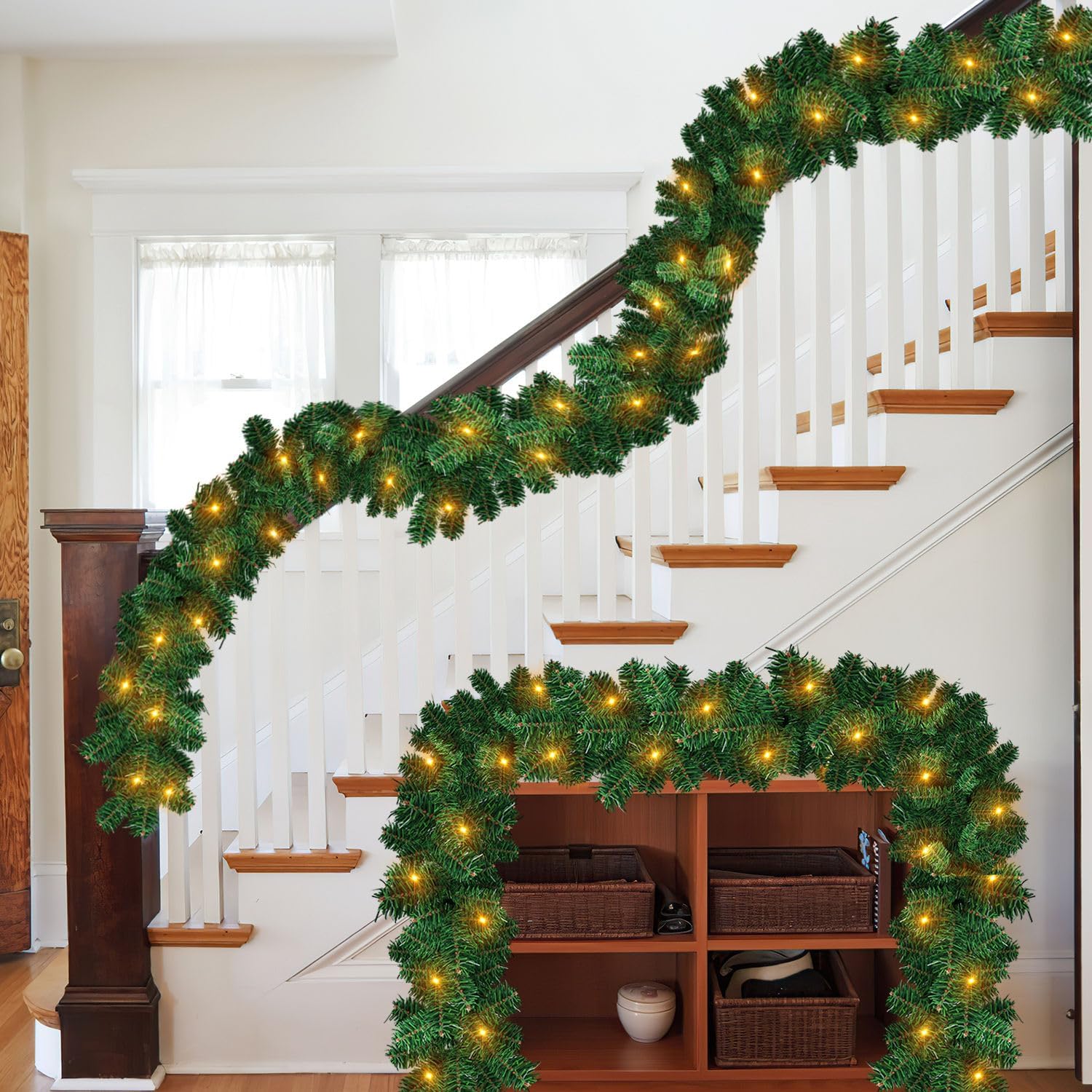 2 Pack Christmas Garland Decoration,5M/16ft Christmas Wreath with 100 Lights,Christmas decoration for Xmas Tree Stair Fireplace Garden Party Front Door,DIY Christmas Trees