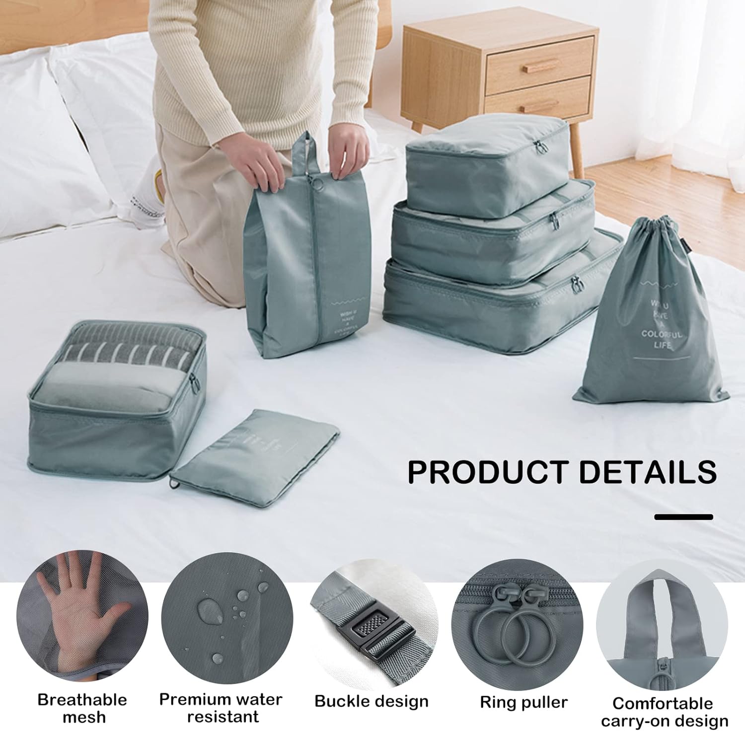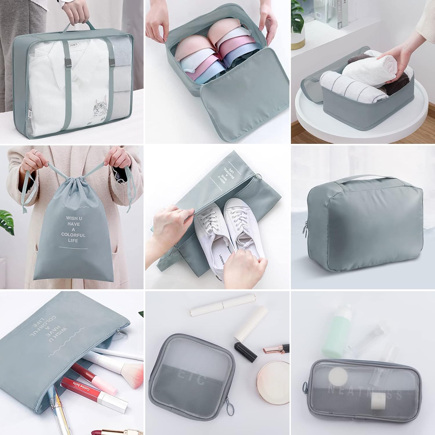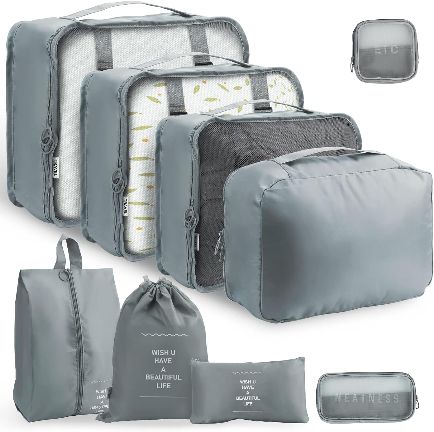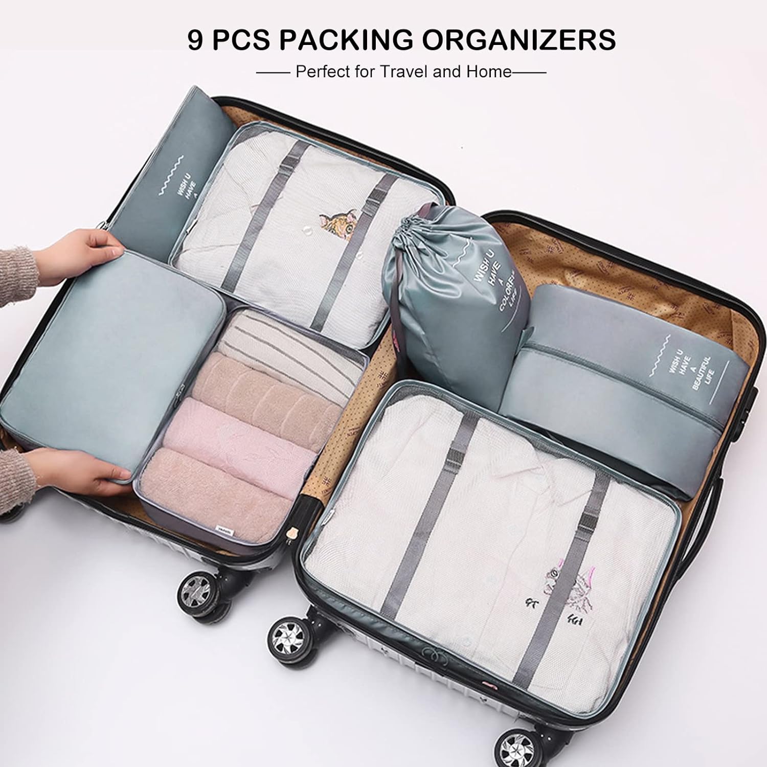 Packing Cubes for Suitcase - 9 PCS Travel Packing Cubes Lightweight Suitcase Organizer Bags Set Luggage Packing Organizer for Travel Accessories with Shoe Bags - Gray