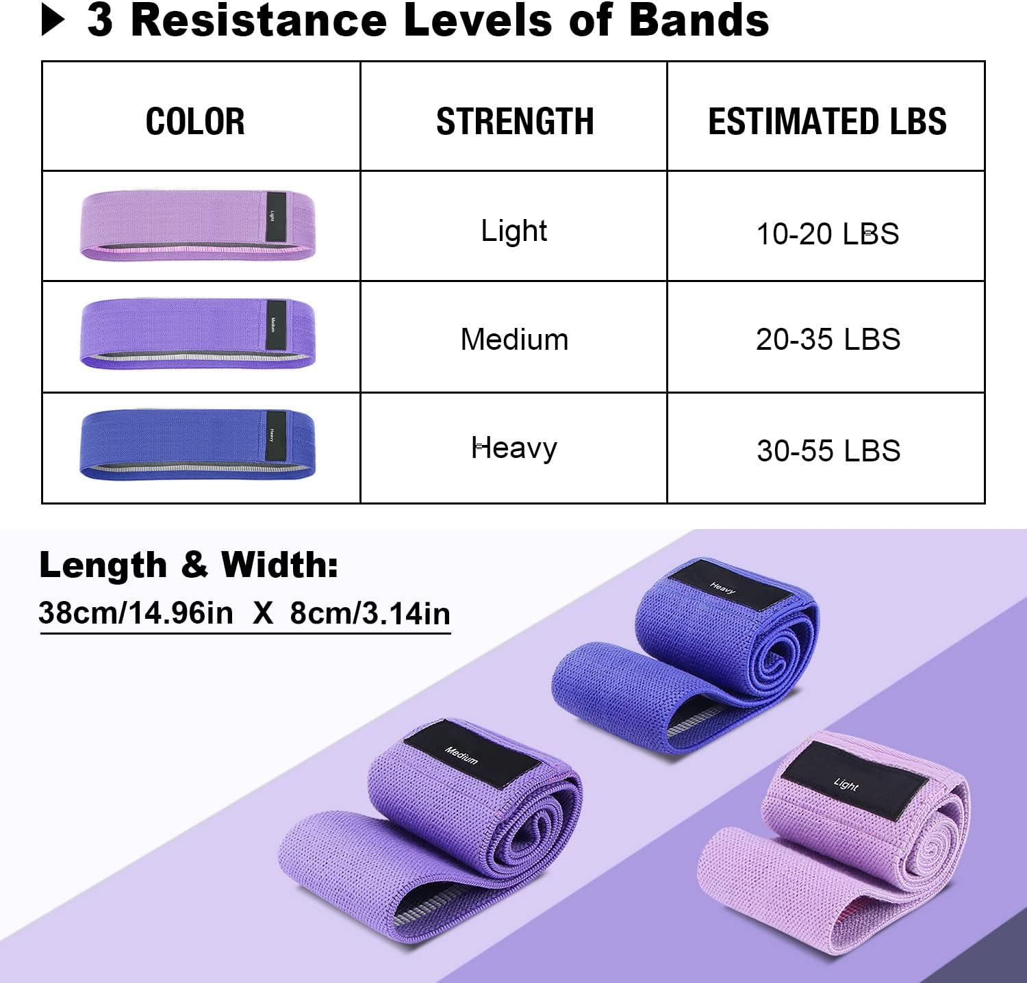 Resistance Bands, Resistance Band for Legs and Glutes, Includes Exercise Band Workout Booklet, Non-Slip Booty Band for Women & Men Hip Circle, Back Stretcher Set of 3