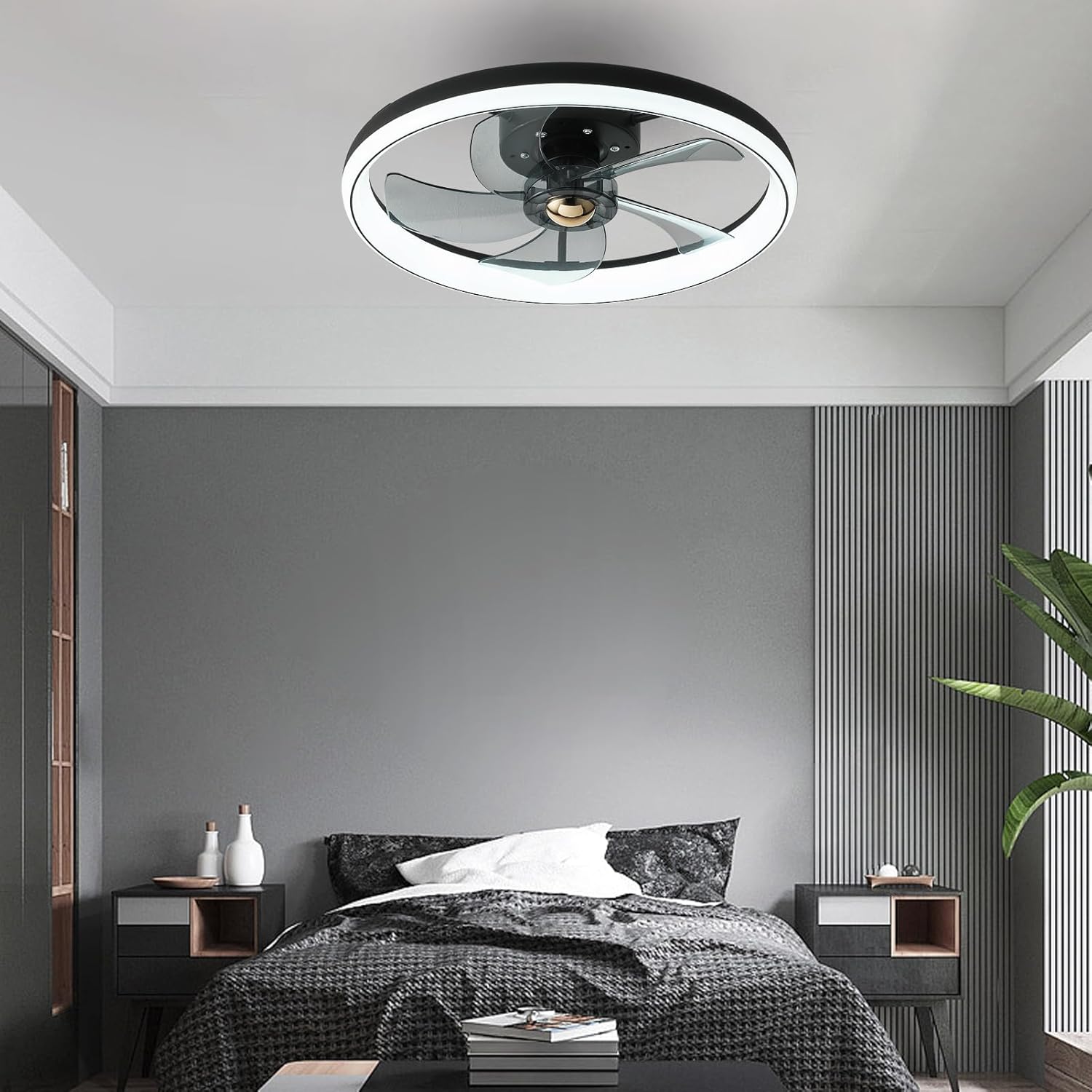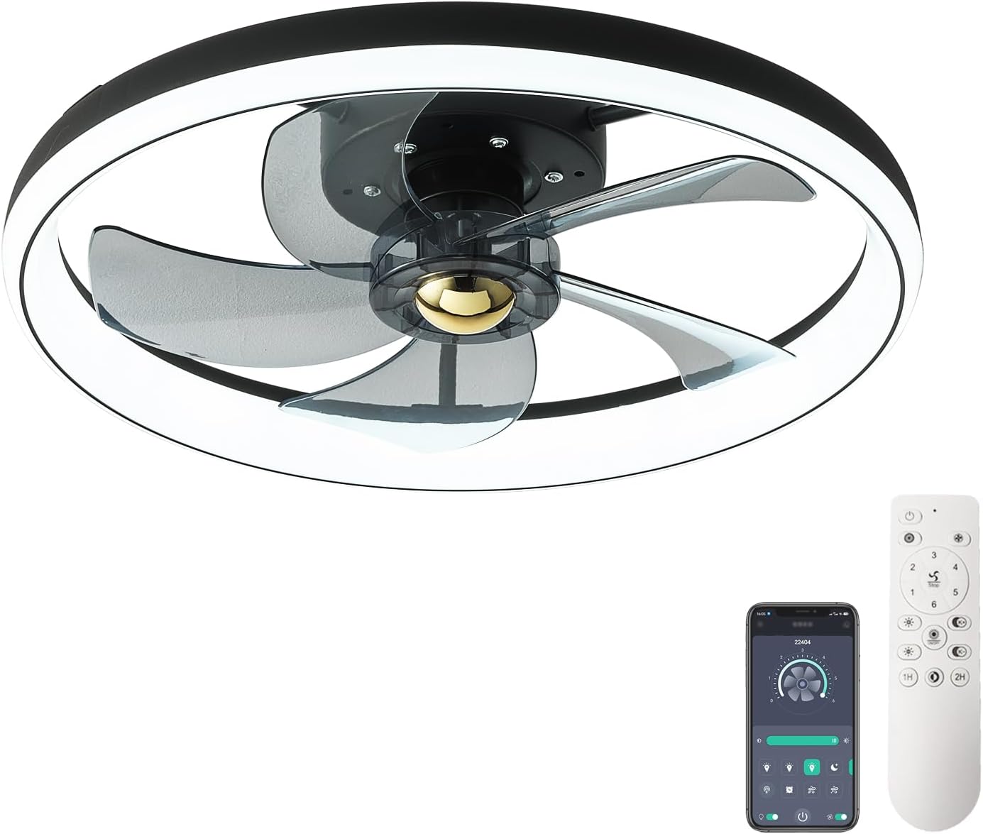 Reversible Ceiling Fans with Lights and Remote 49CM 48W Modern Low Profile Ceiling Fan Light Timing 6 Speeds 3-Color Dimmable Flush Mount Ceiling Fans with Lamps Smart App Control Ceiling Fans [Energy Class A]
