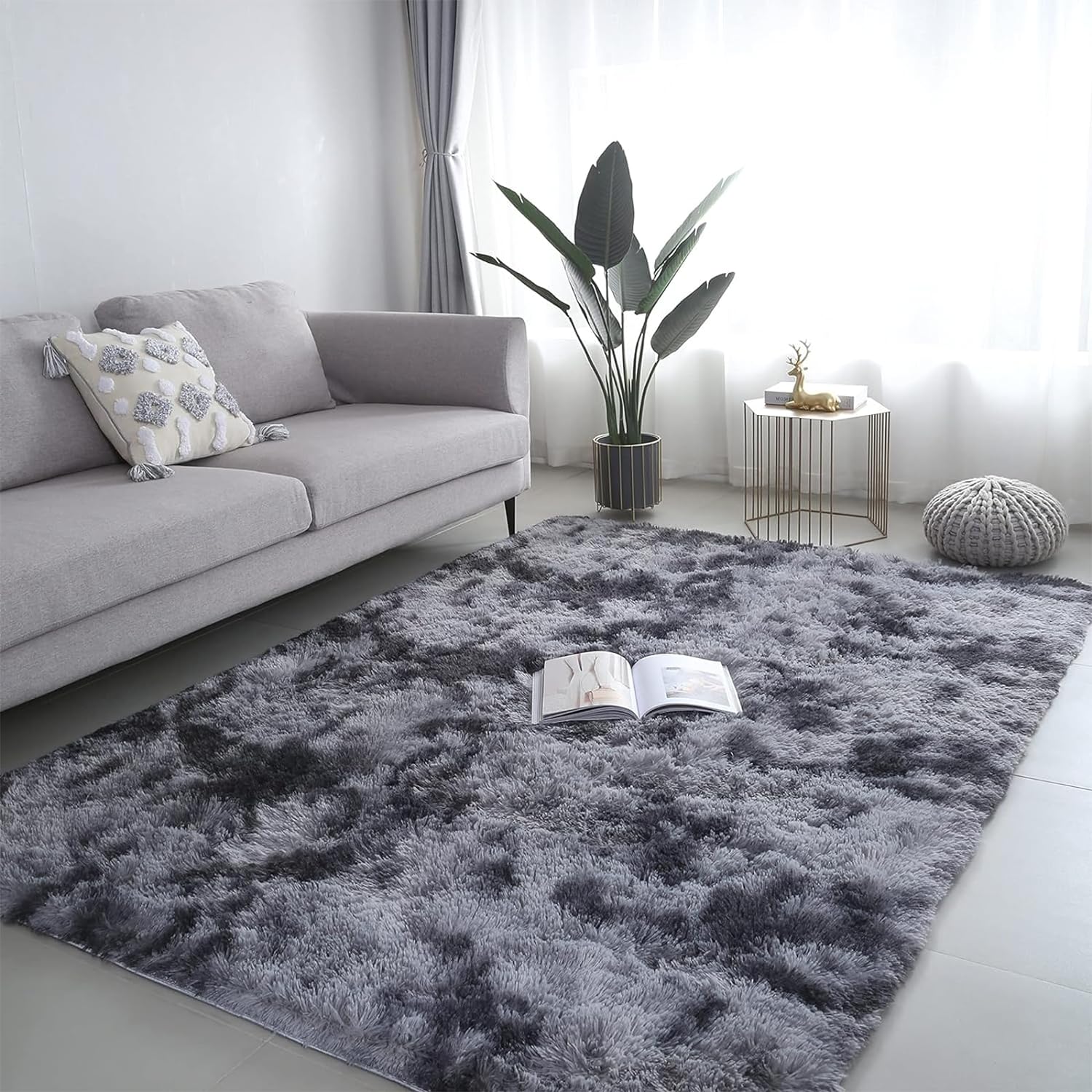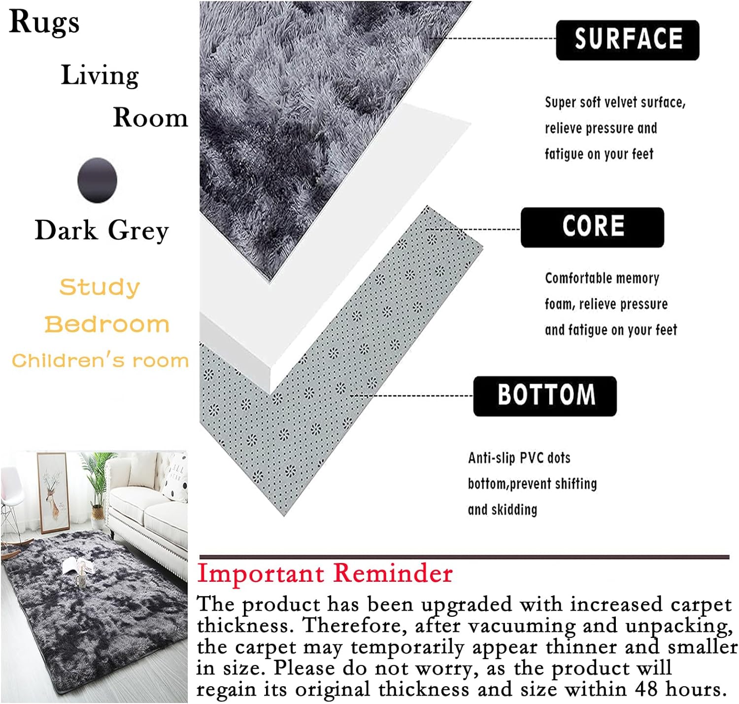 Rug For Living Room Bedroom Soft Shaggy Tie-Dye Area Rugs Plush Fluffy Non-Slip Living Room Rug Indoor Home Kidsroom Decor Carpet (DarkGrey, 80 * 160cm)